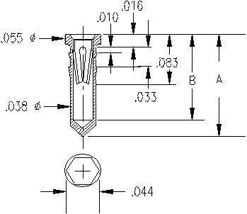 Hex Press-fit in .041 ±.002 Mtg. Hole