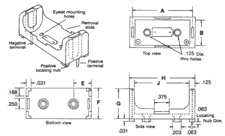 • A - Special molded locating Nub on holder is designed so installation on PC board can be done in only one direction.